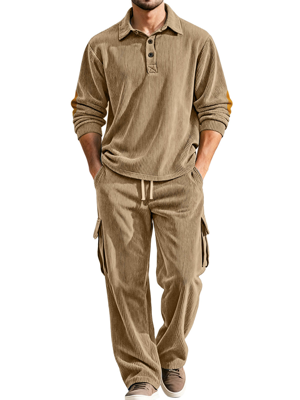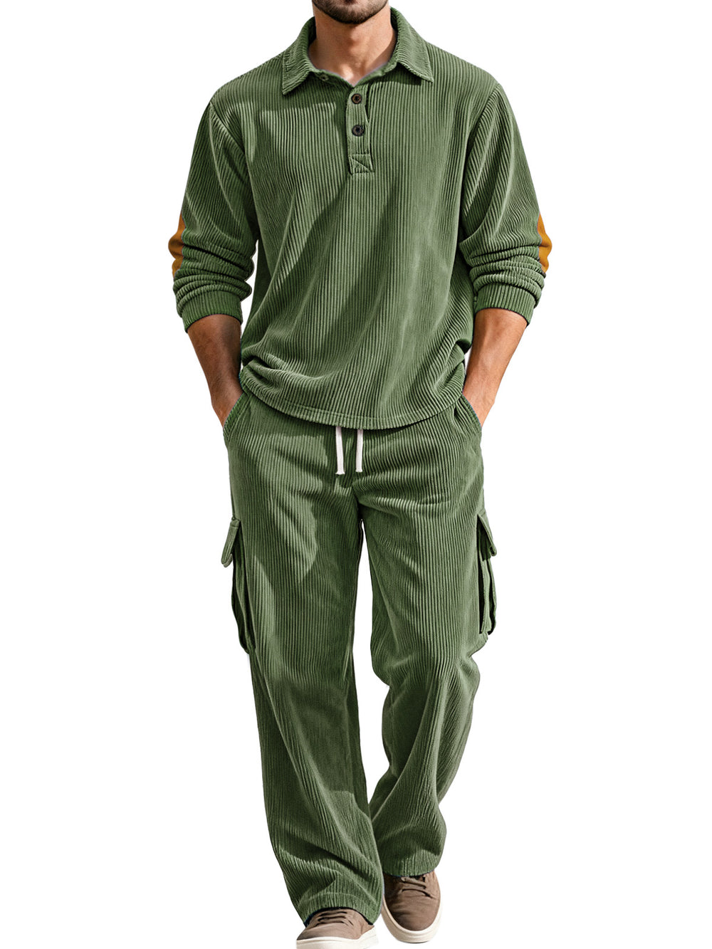 Autumn And Winter Corduroy Lapel Long-sleeved Polo Shirt Straight Pants Casual Suit