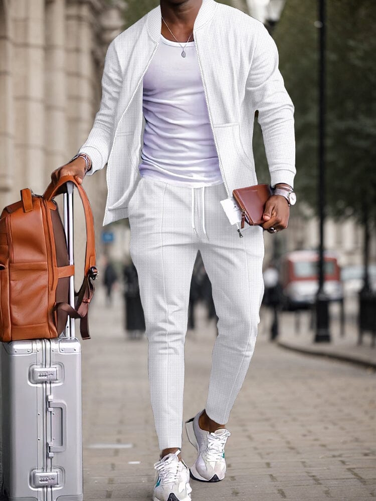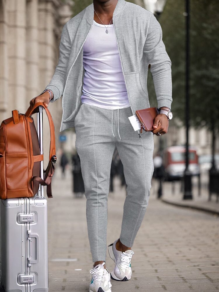 Bottoms: Elastic waistband with adjsutable drawstring, two slant pockets