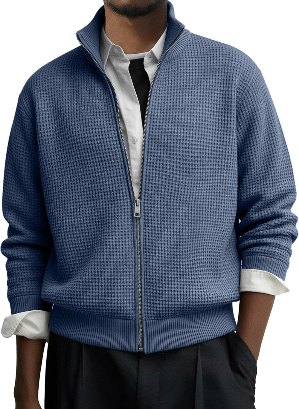 Men's Casual Solid Waffle Zip-up Long Sleeved Jacket