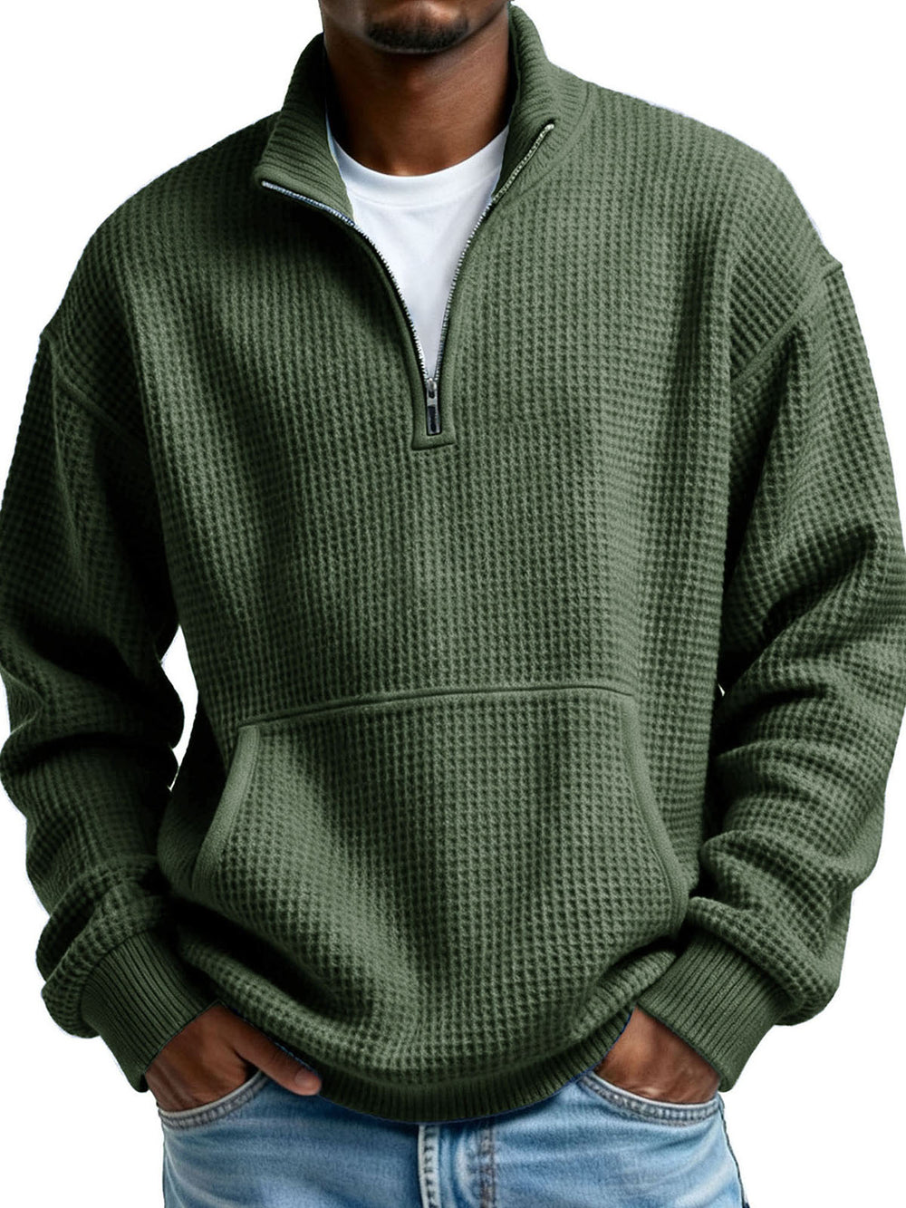 Men's Clothing Fashionable Casual Pit Strip Fabric Upright Collar Zipper Pockets Long-sleeved Hoodie