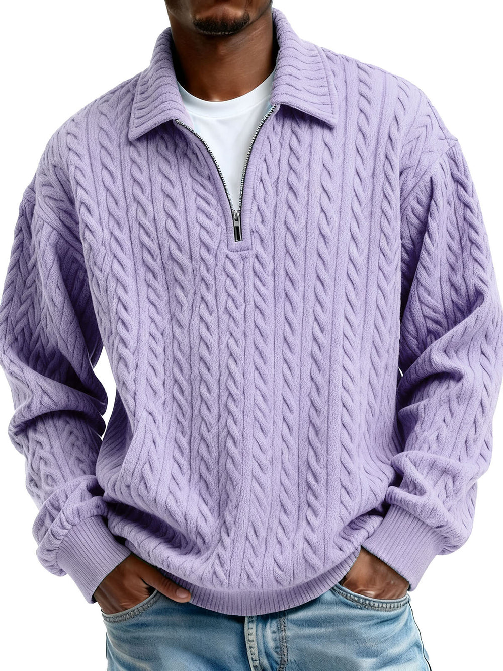 Men's Clothing Fashionable Casual Twist Texture Fabric Lapel Zipper Long-sleeved Hoodie