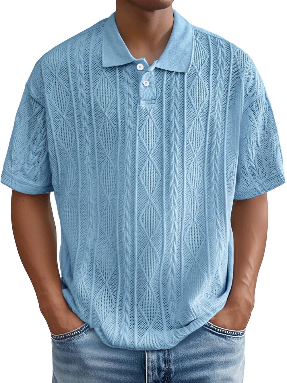 Men's Daily Casual Jacquard Texture Casual And Comfortable Short-sleeved Polo Shirt