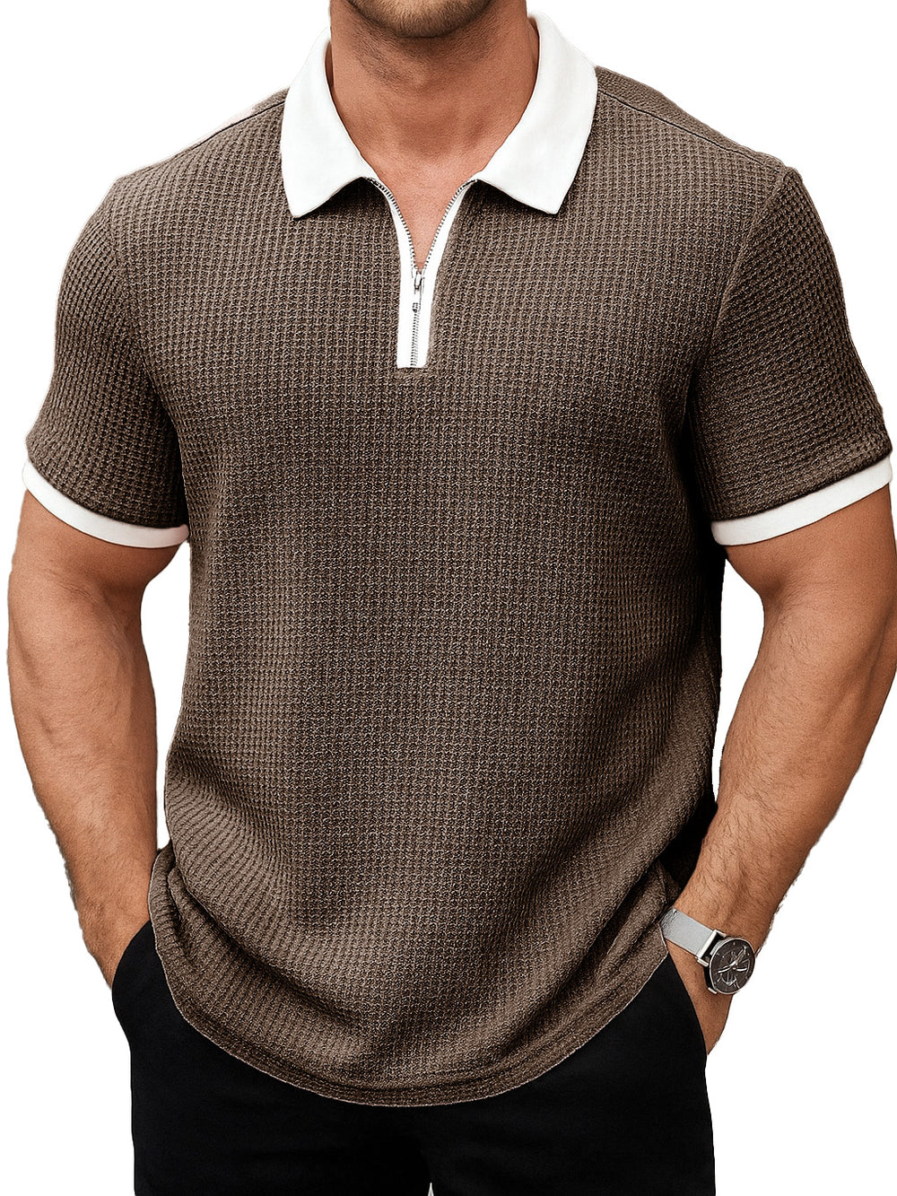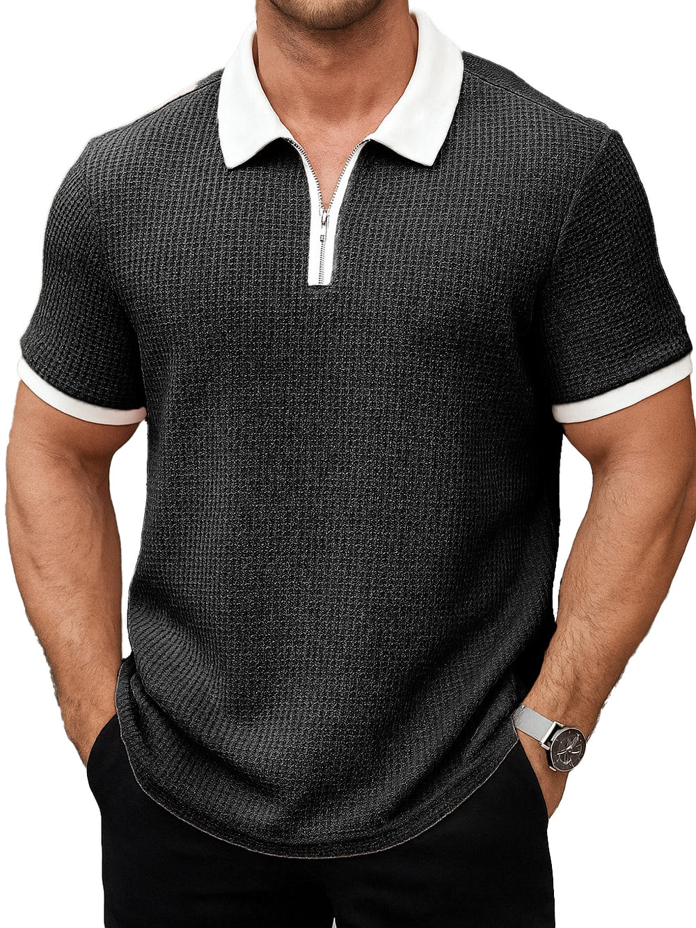 Men's Daily Casual Patchwork Waffle Fabric Lapel Short-sleeved Polo Shirt