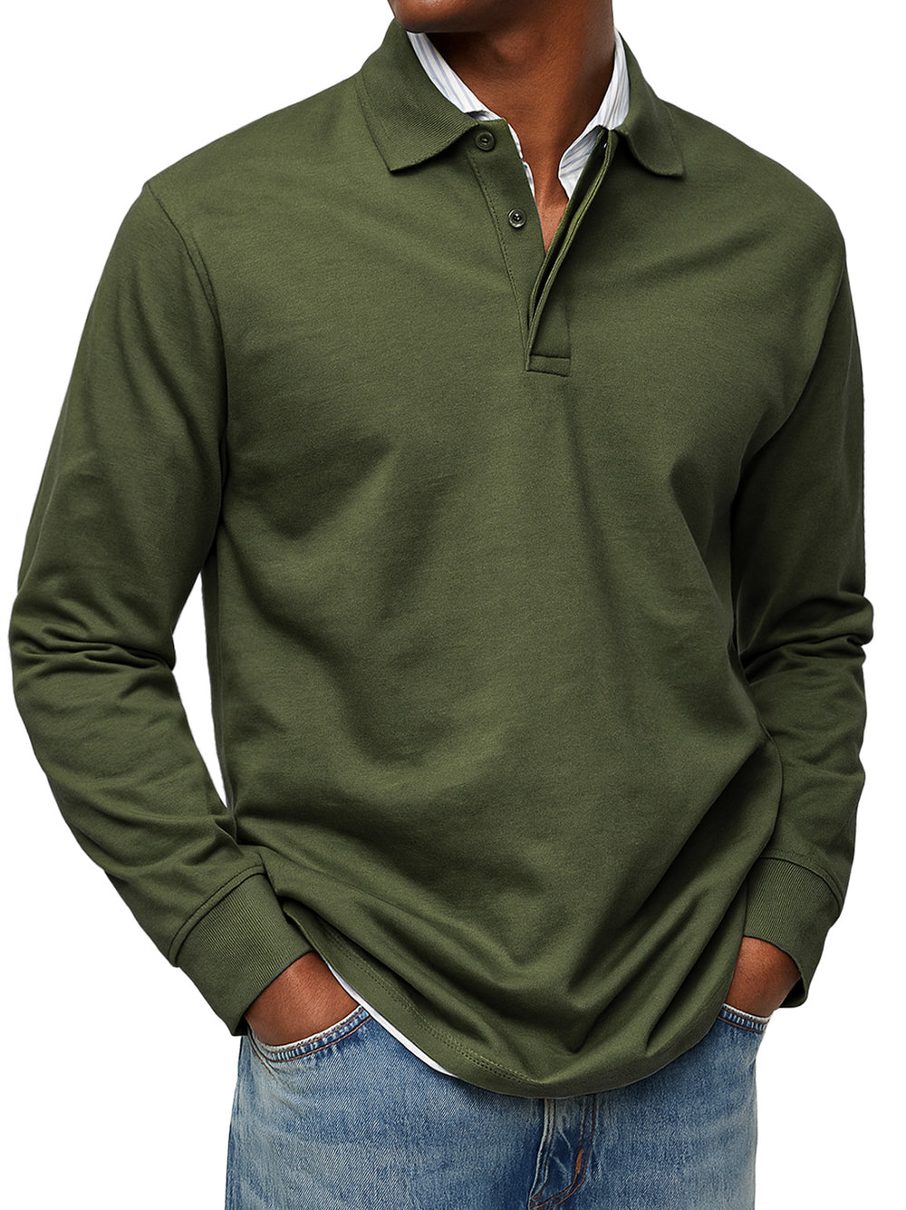 Men's Daily Double-layer Lapel Button-down Solid Color Long-sleeved Polo Shirt