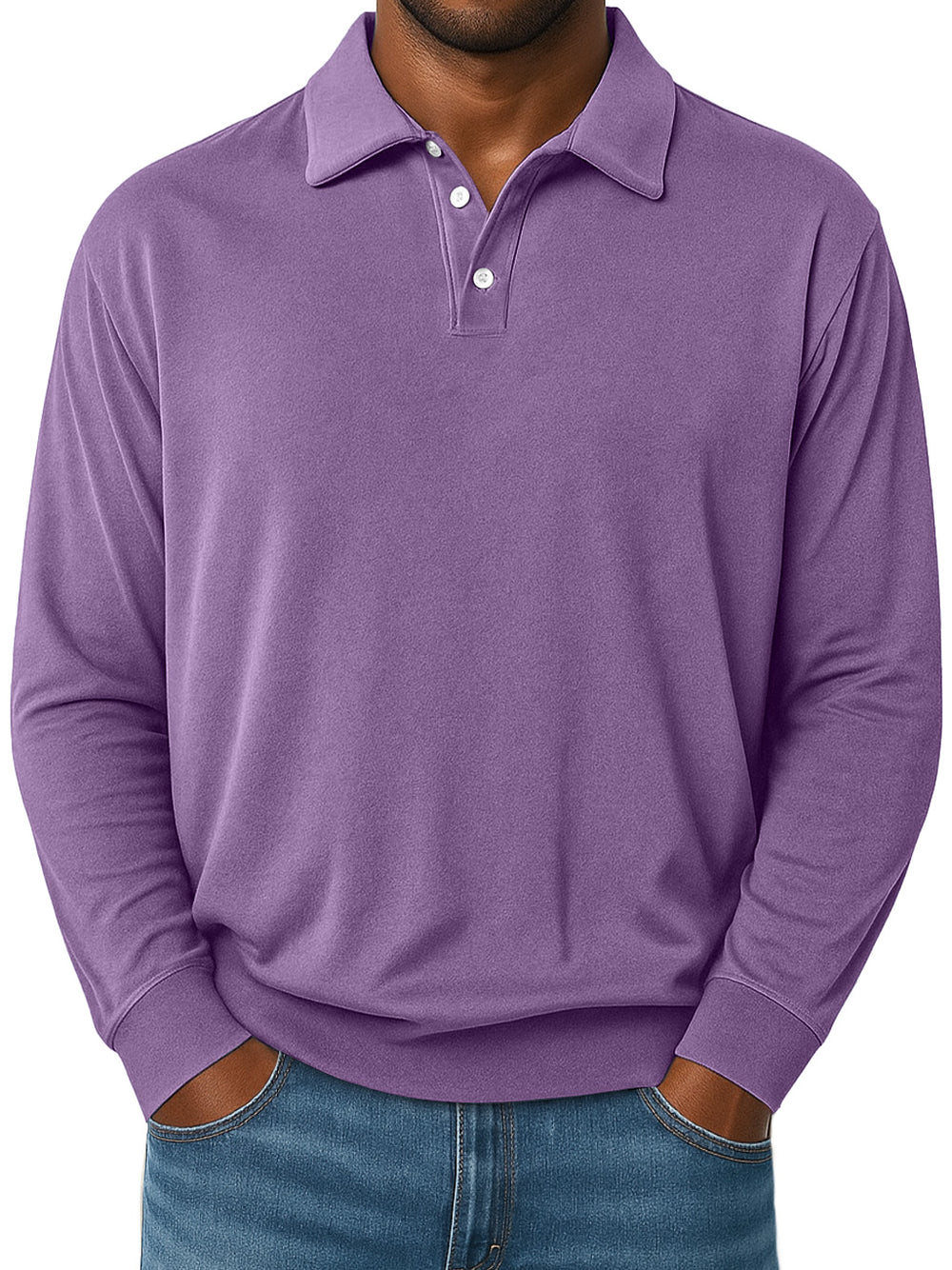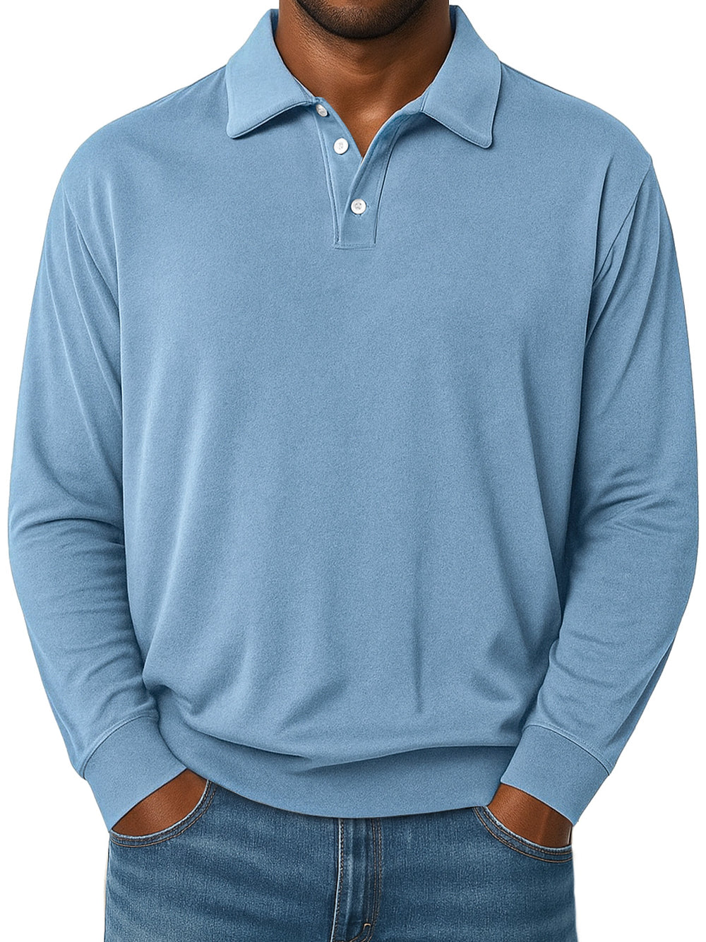 Men's Daily Lapel Button-down Comfortable Loose Casual Long-sleeved Polo Shirt