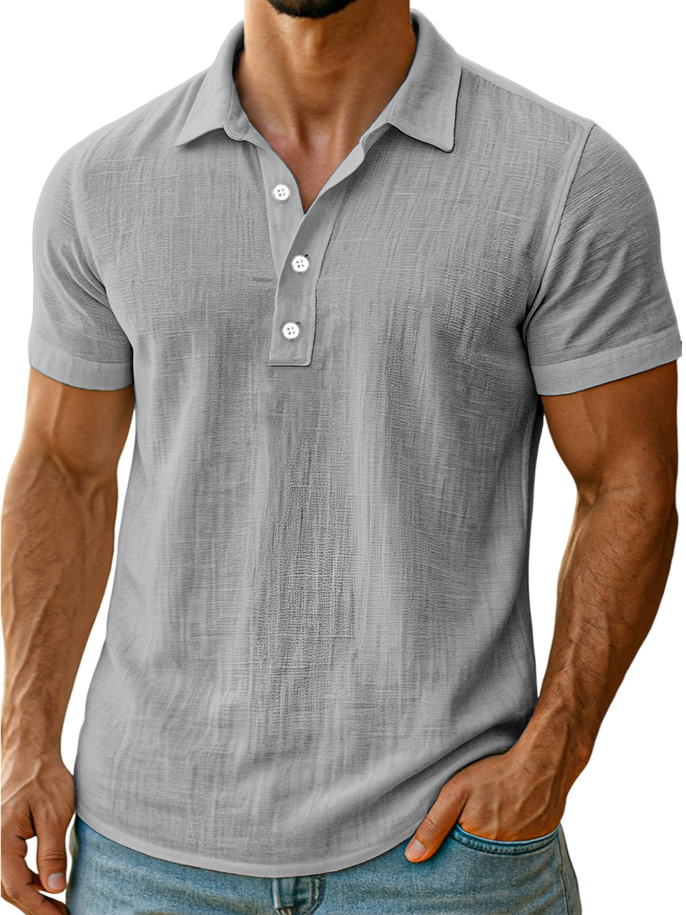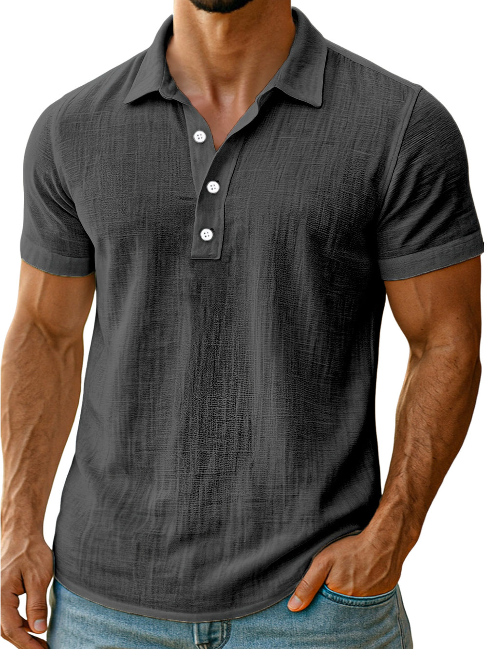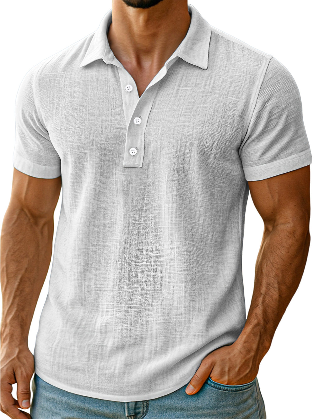 Men's daily simple and comfortable solid color linen short-sleeved POLO shirt