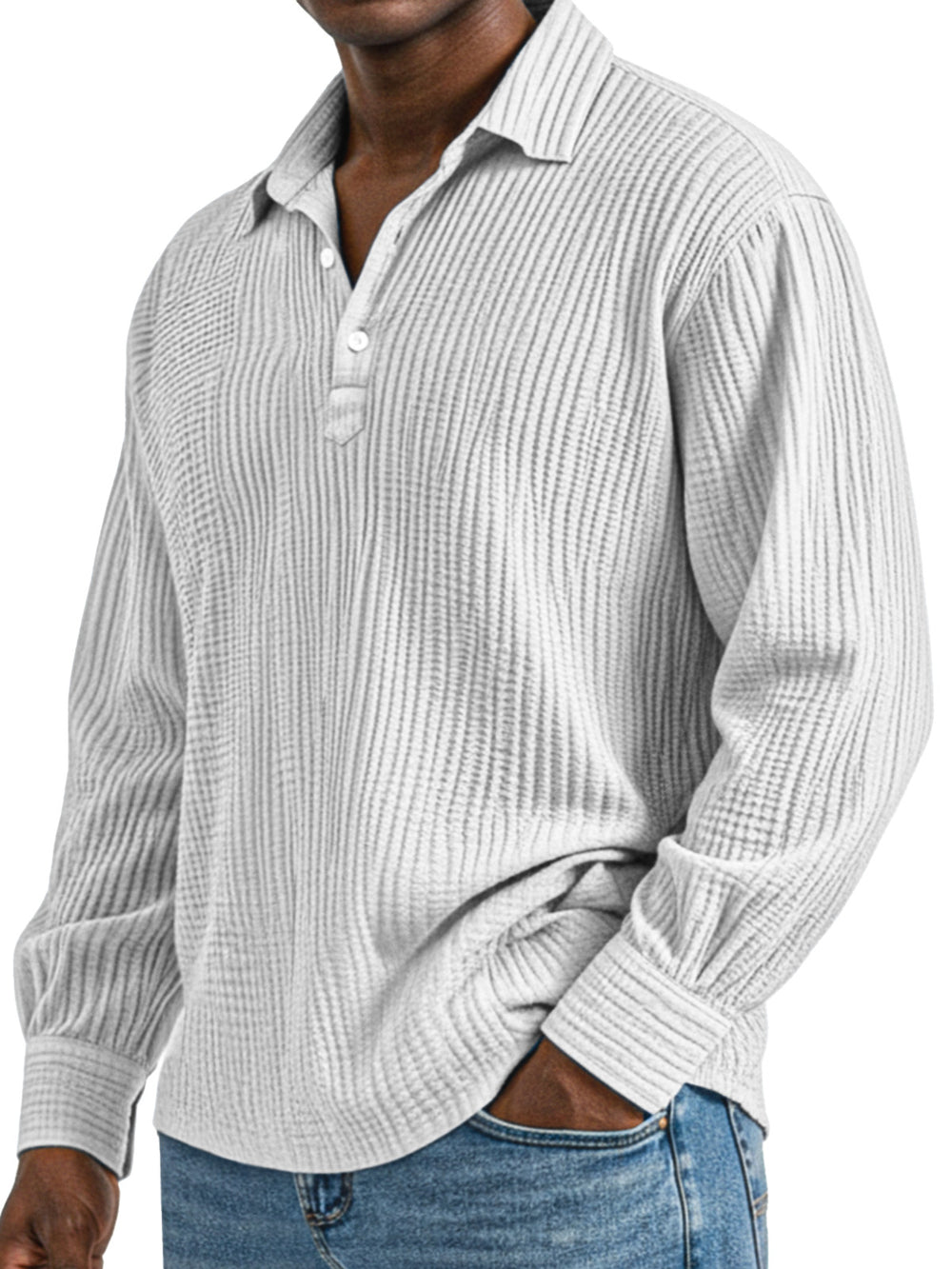 Men's Daily Simple Solid Color Pleated Long Sleeve Lapel Polo Shirt