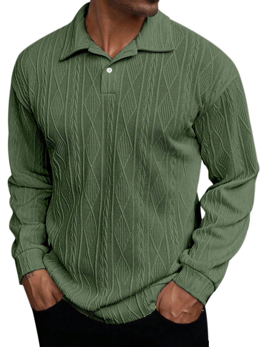 Men's Daily Simple Solid Color Texture Long-sleeved Lapel Polo Shirt