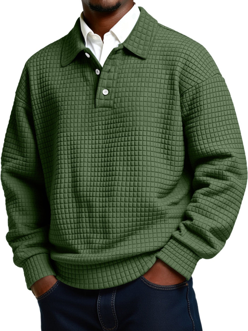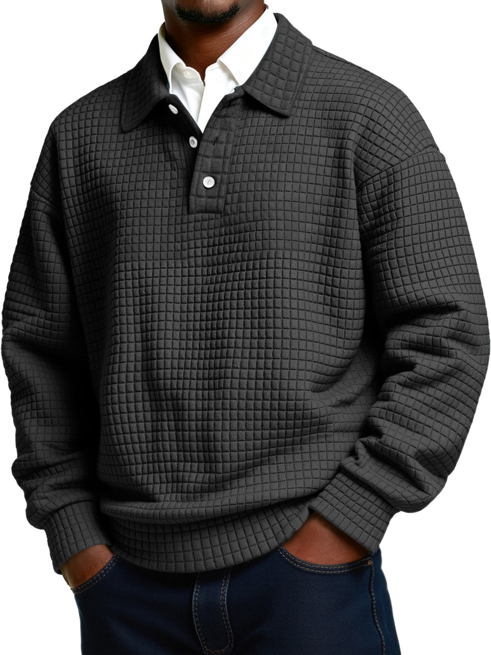 Men's Daily Small Plaid Lapel Button Casual Long-sleeved Polo Shirt