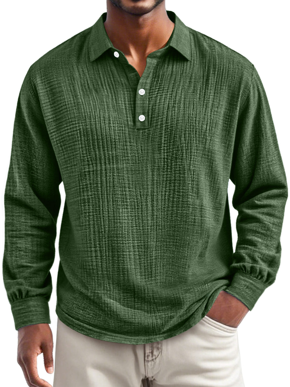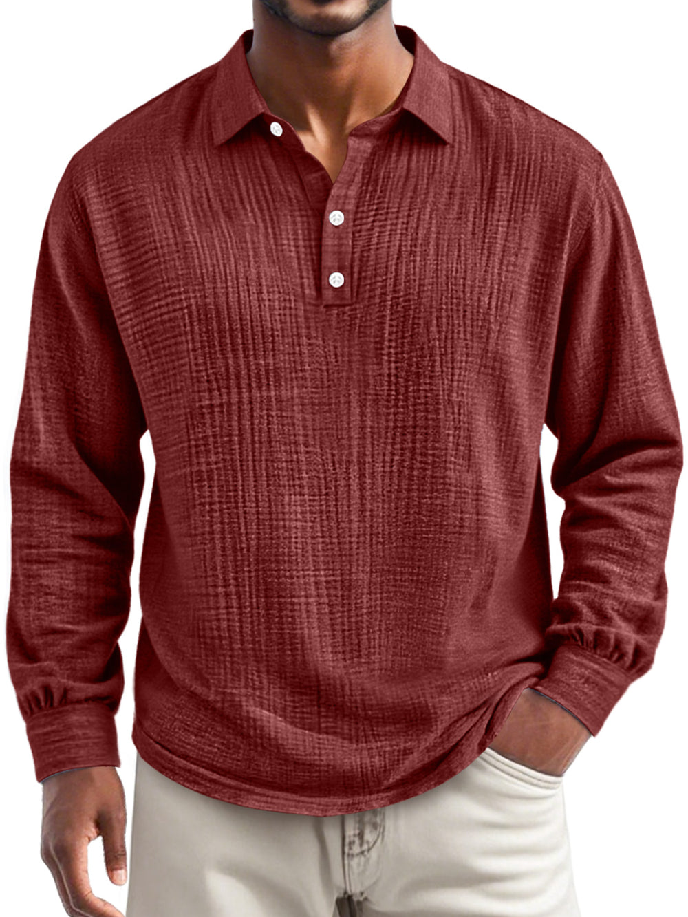 Men's Everyday Pleated Lapel Button-down Casual Long-sleeved Polo Shirt