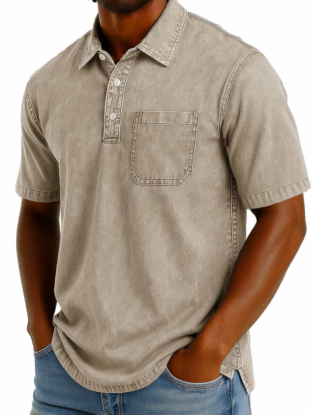 Men's Fashion Casual Retro Washed Short-sleeved Lapel Pocket Polo Shirt