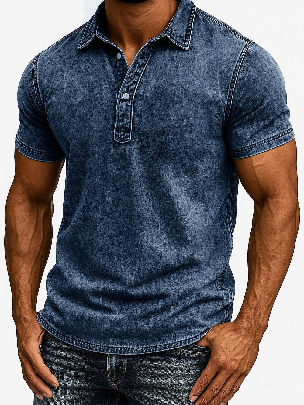 Men's Fashion Outdoor Retro Distressed Fabric Short Sleeve Polo Shirt