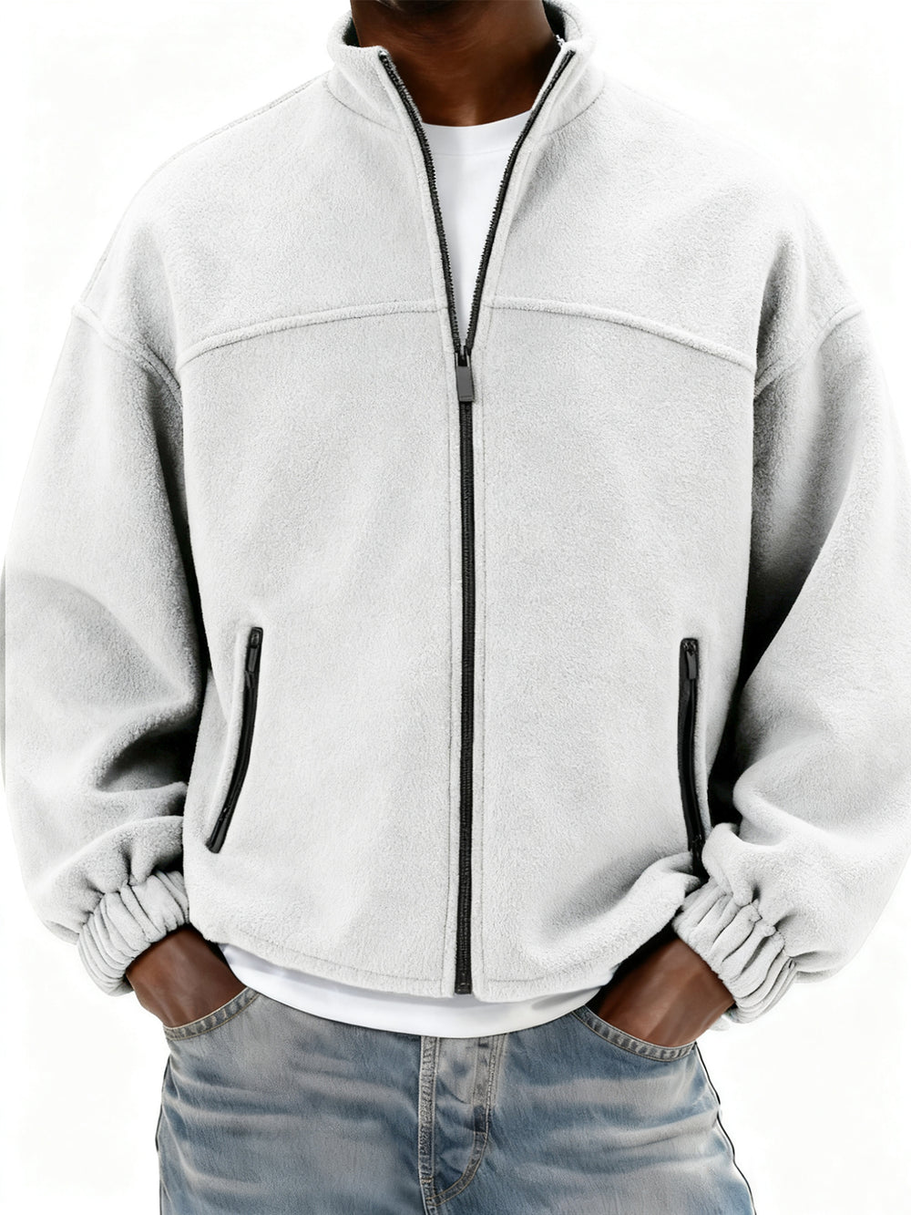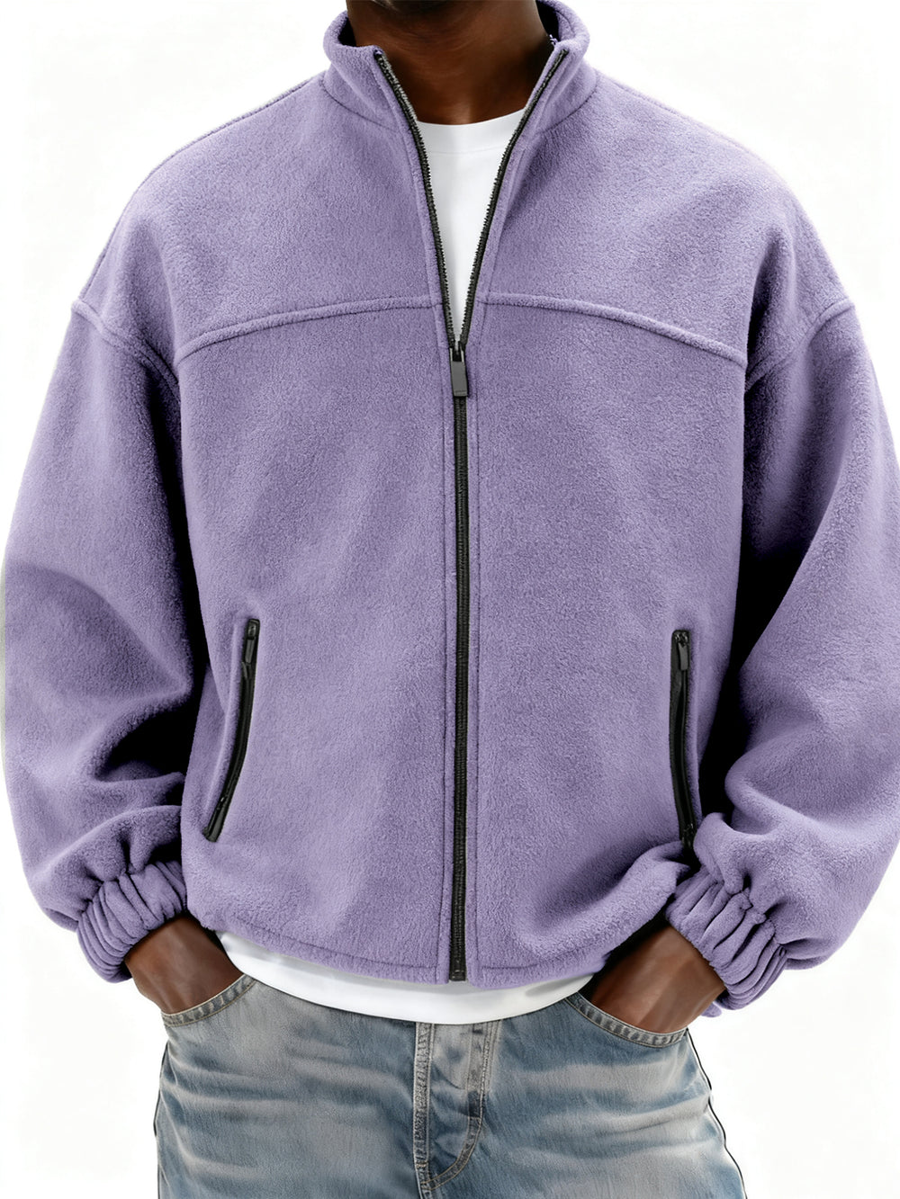 Men's Fleece Full Zip Stand Collar Jacket with Side Pockets