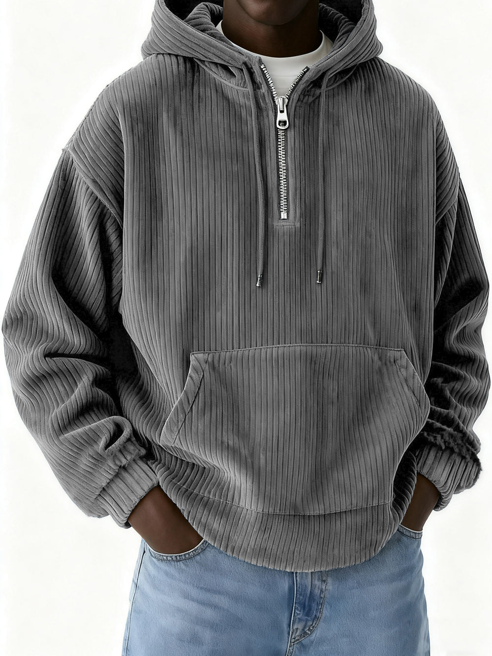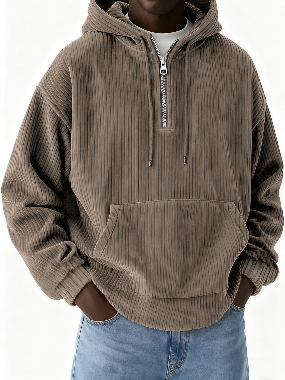 Men's Half-Zip Hooded Corduroy Pit Sweatshirt
