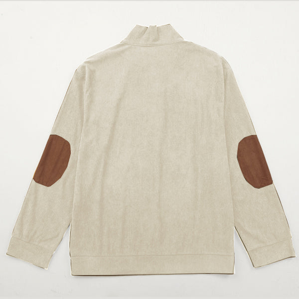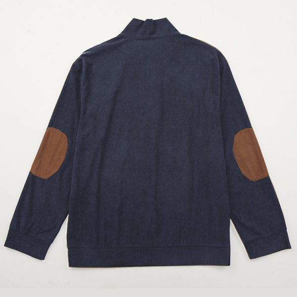 Men's Outdoor Casual Zip Polo Stand Collar Long Sleeve Sweatshirt Double Layer Lapel Fur Leather Collar Pullover