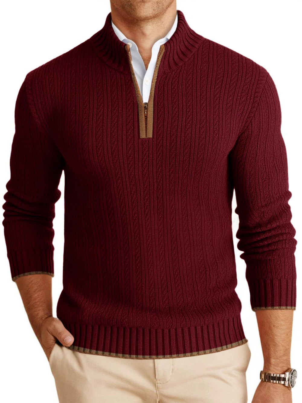 Pair with tailored trousers and dress shoes for a professional look that's still comfortable. Roll up the sleeves slightly for a modern touch.