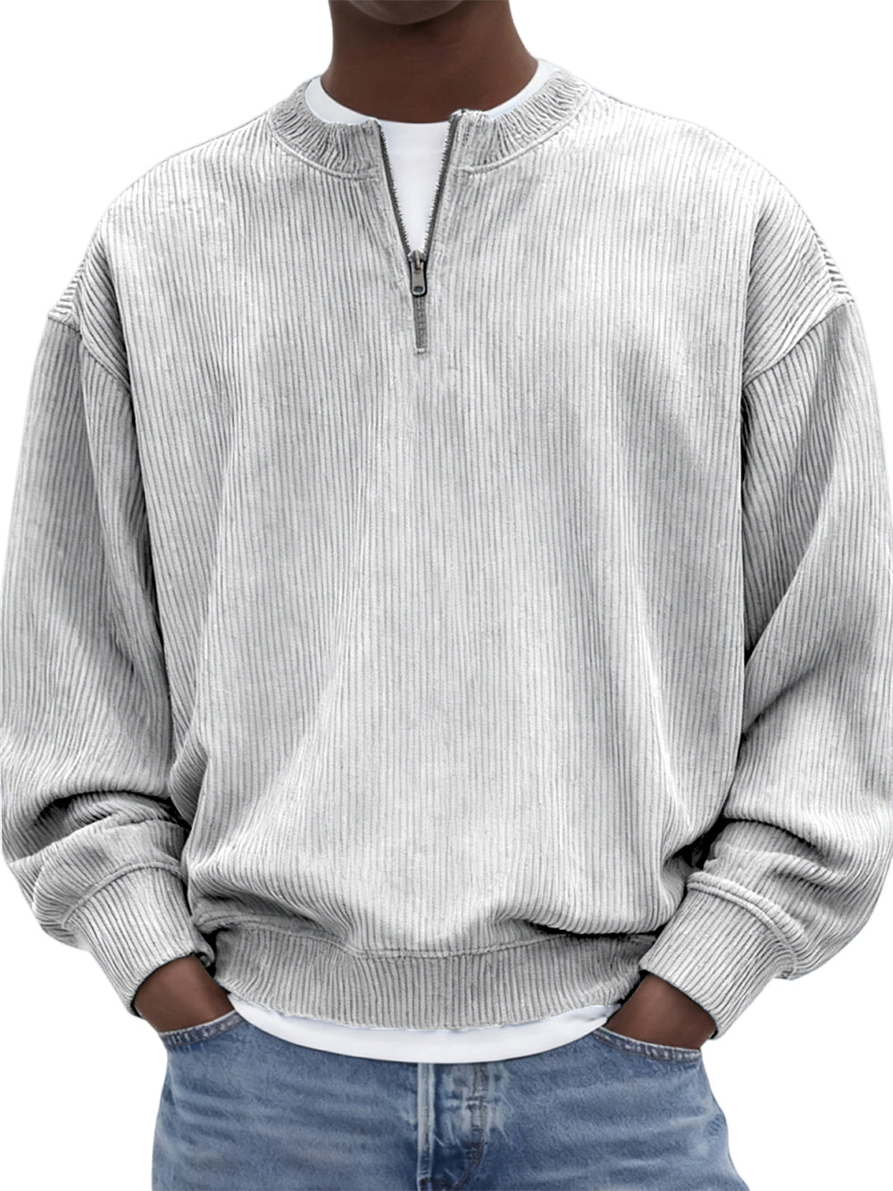 Men's Quarter-Zip Stylish Corduroy Long Sleeve Pullover