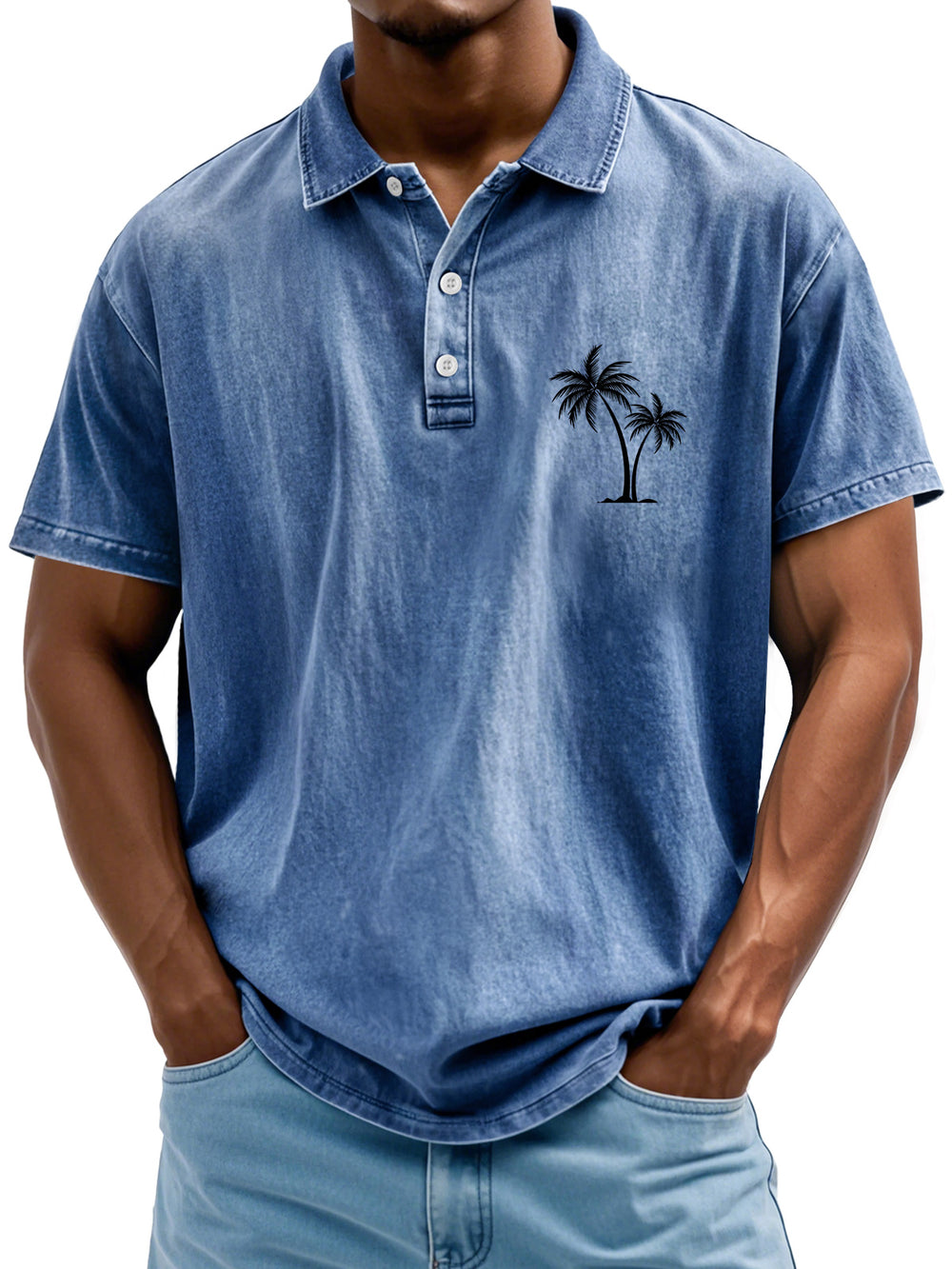 Men's Retro Lapel Coconut Tree Printed Casual Short Sleeve POLO Shirt
