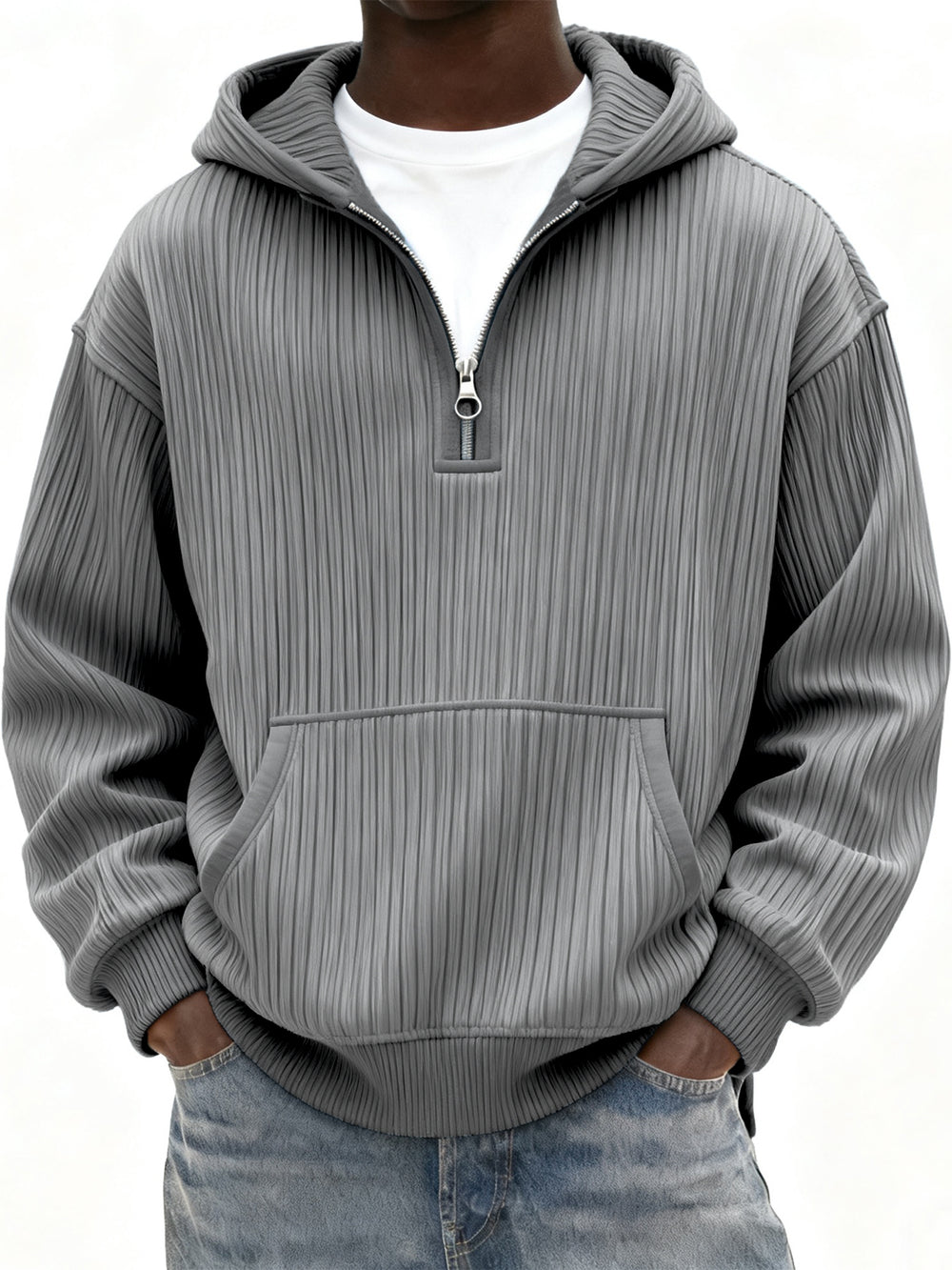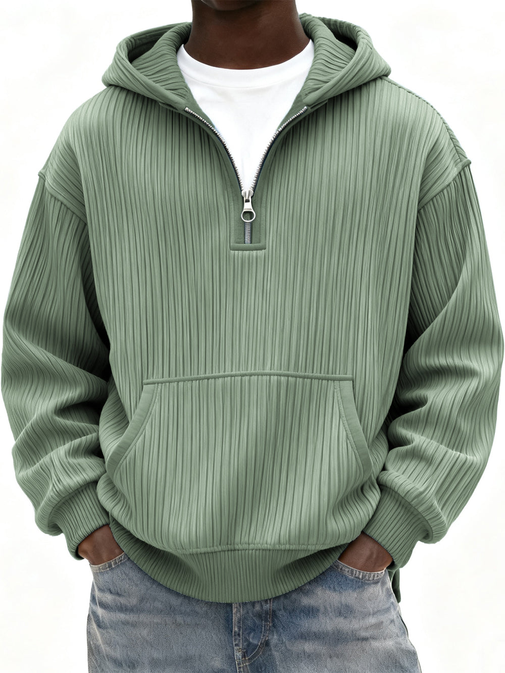 Men's Ribbed Quarter Zip Hoodie with Kangaroo Pocket