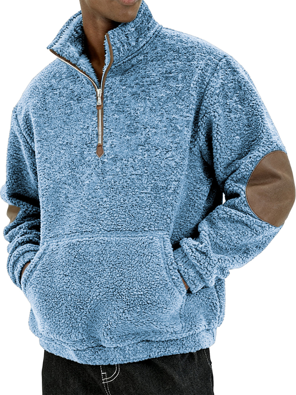 Men's Sherpa Cozy and Stylish Half - Zip Pullover with Elbow Patches