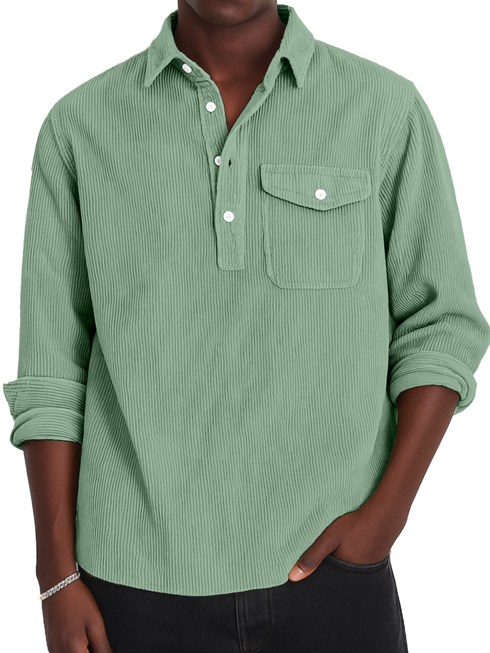 Men's Simple Solid Color Corduroy Lapel Long-sleeved Polo Shirt