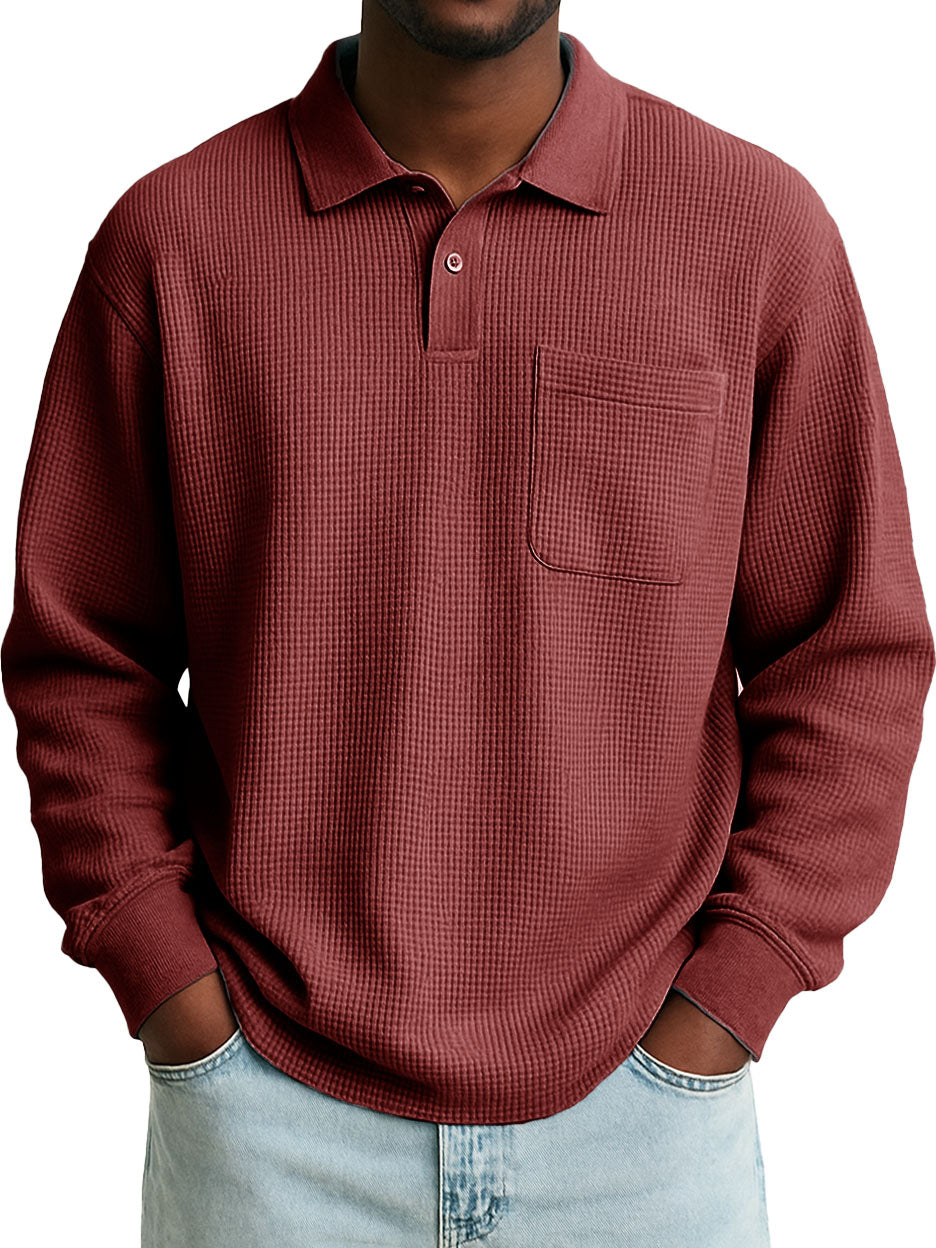 Men's Stylish Casual Everyday Waffle Long-sleeved Lapel Polo Shirt