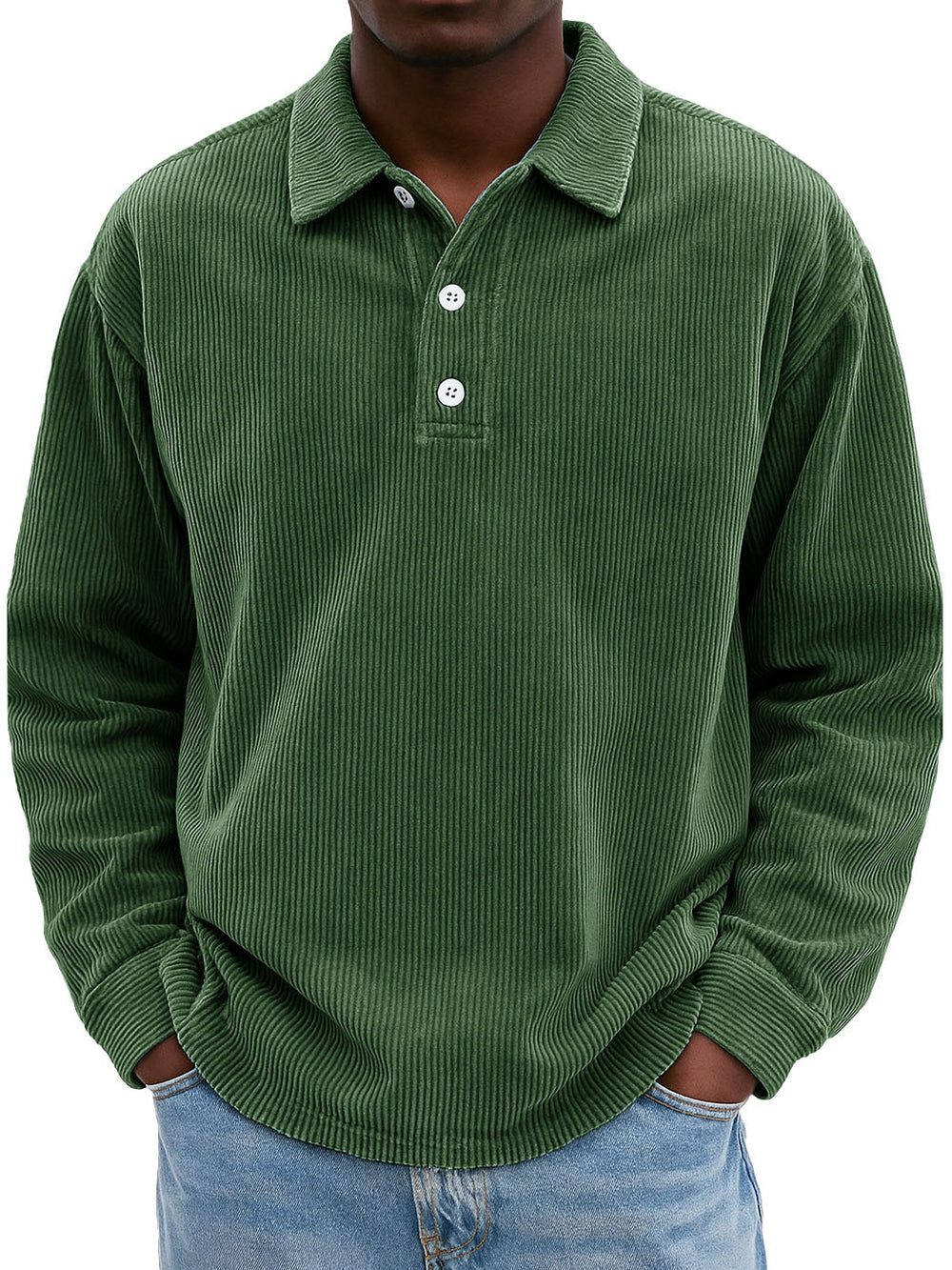 Men's Stylish Retro Casual Corduroy Lapel Long-sleeved Polo Shirt