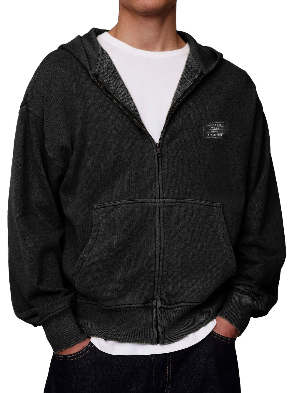 Men's Stylish Retro Outdoor Loose-fitting Embroidered Logo Pocket Long-sleeved Zip-up Hooded Sweatshirt