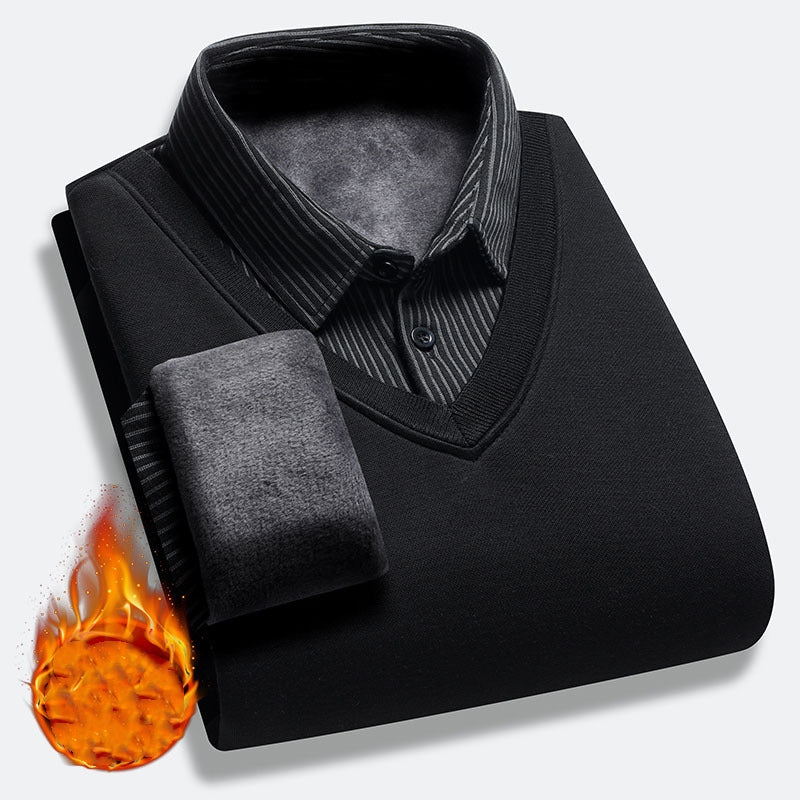 Men's Retro Thermal Fleece Lined Double Layer Sweater