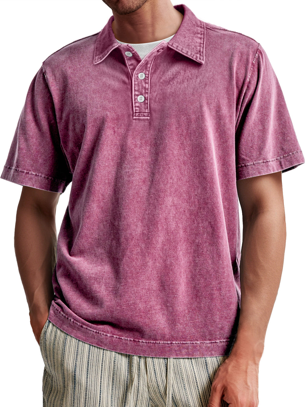 Men's Vintage Washed 100% Cotton Casual Lapel Button Short Sleeve POLO Shirt